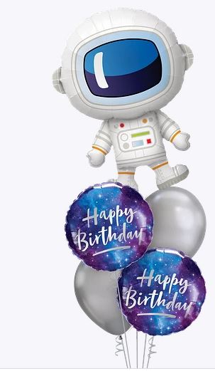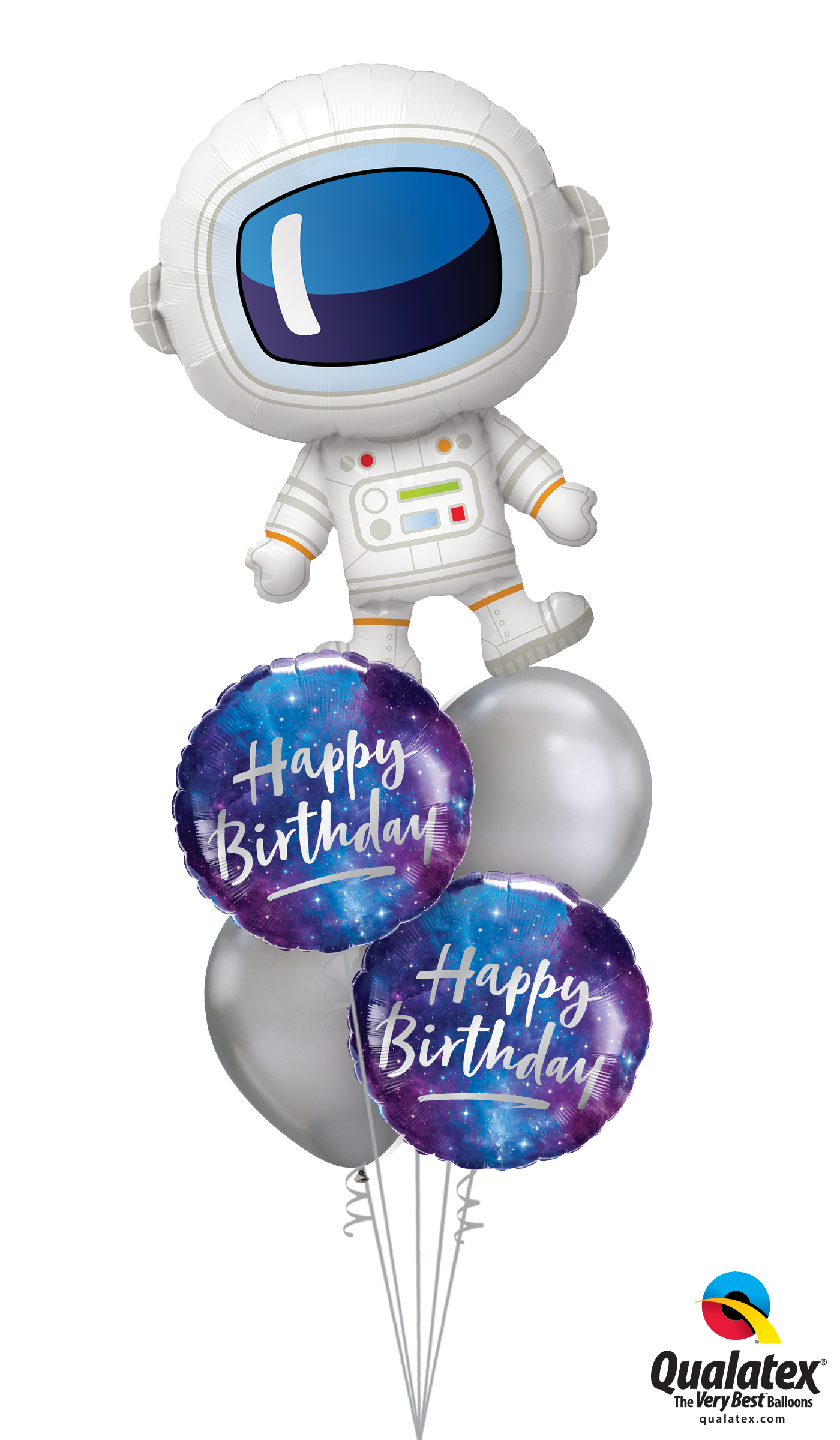 Astronaut Shape Foil Balloon Bouquet 2 Round Shape Happy Birthday and 2 Latex Balloon 11 inches